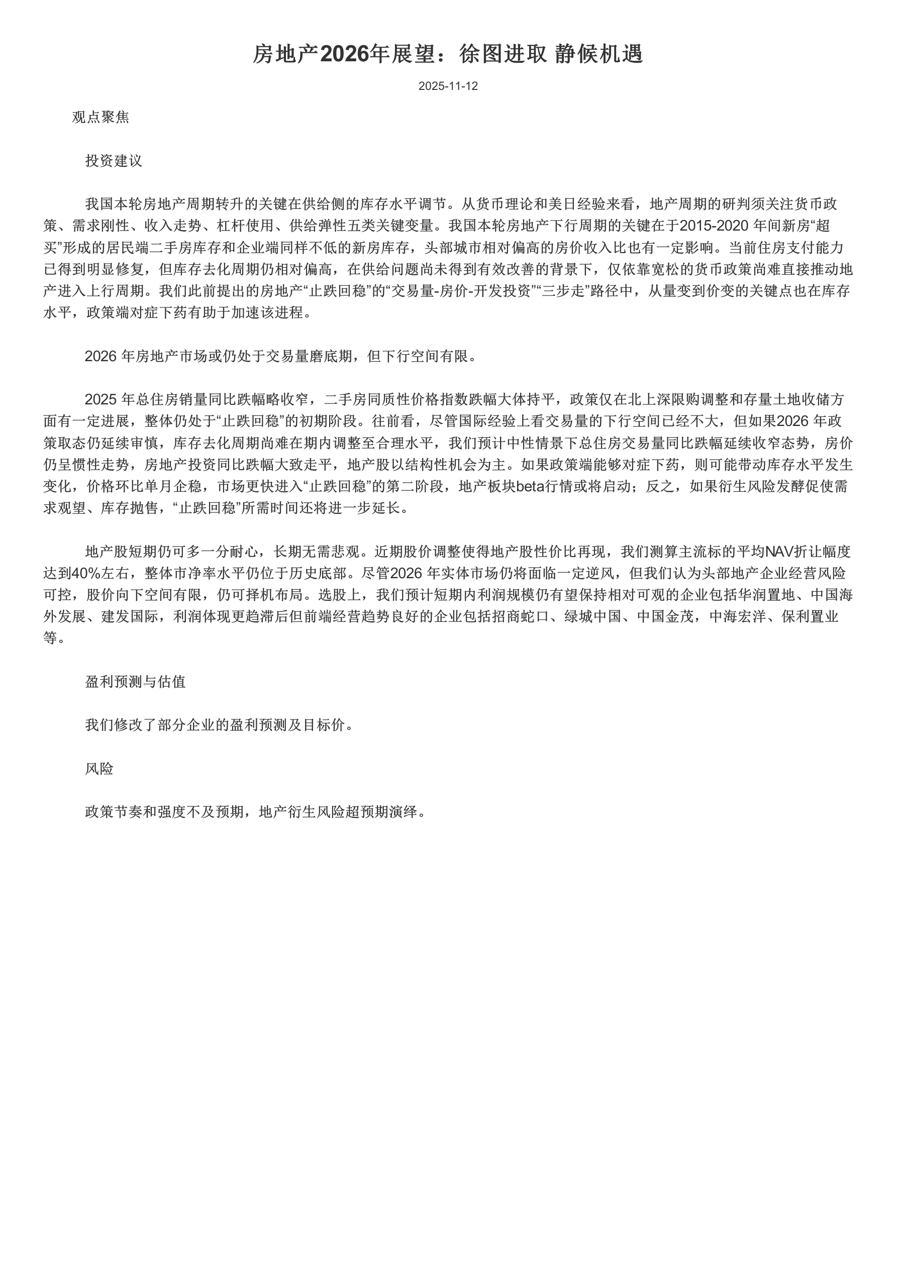 房地产行业2026年展望:徐图进取,静候机遇
