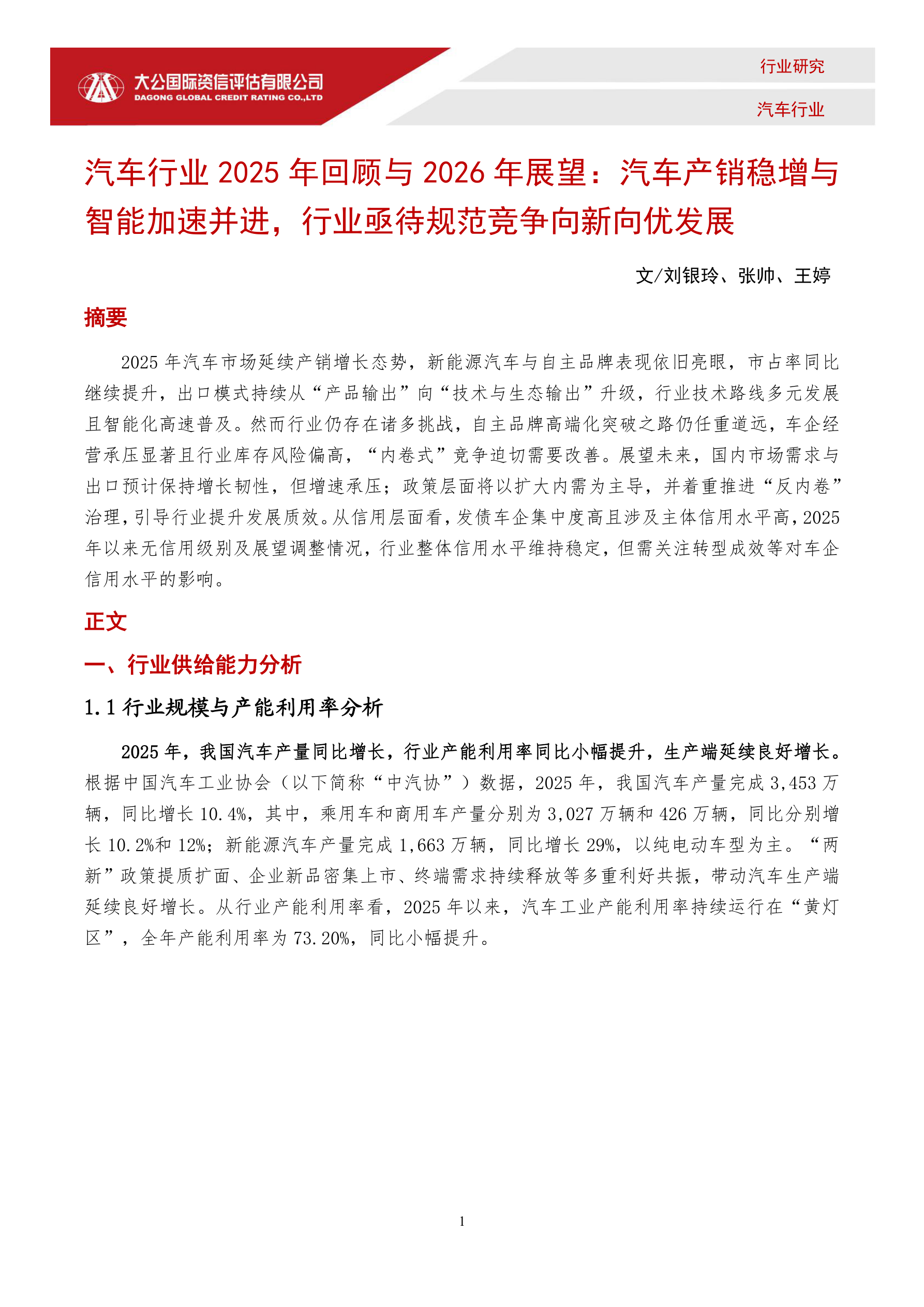 汽车行业2025年信用回顾与2026年展望