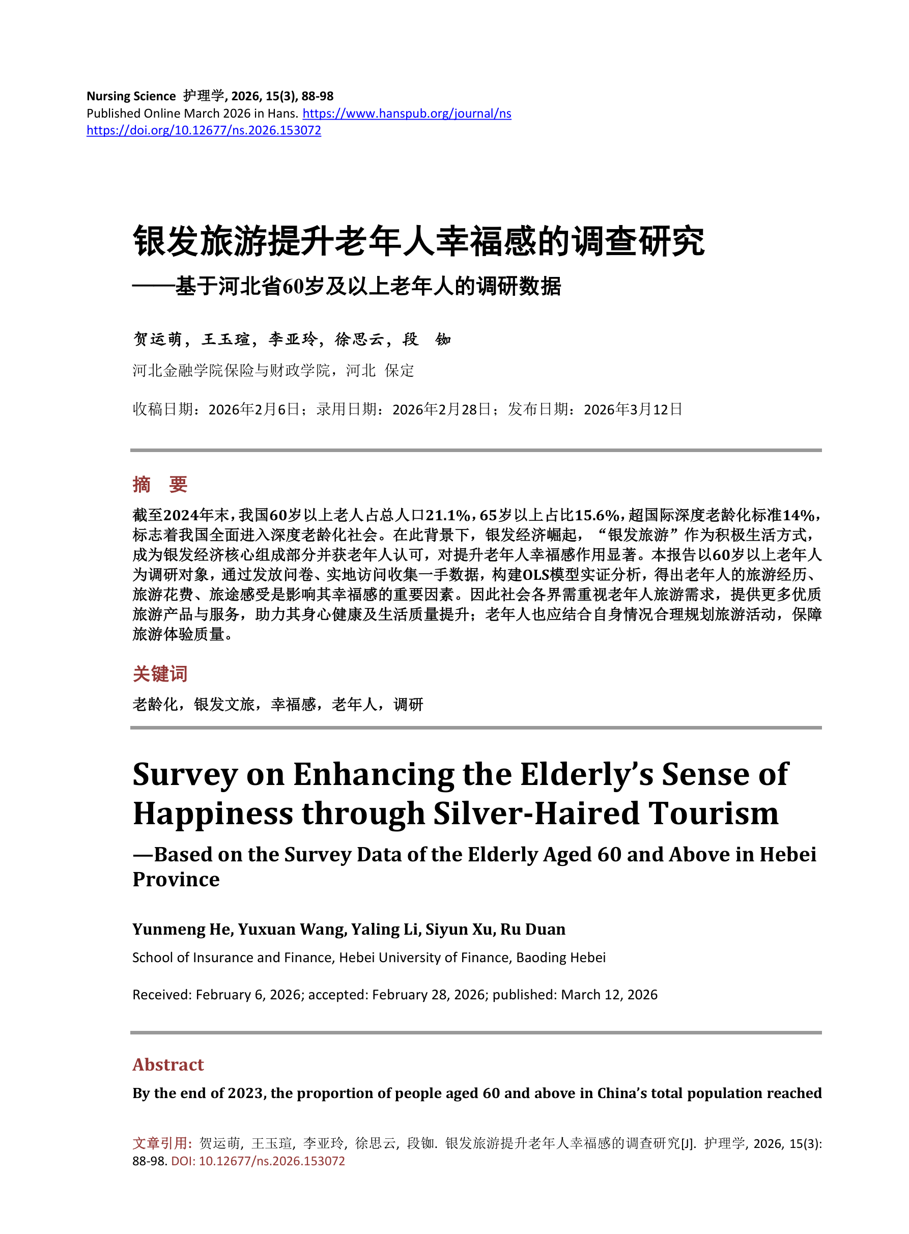 银发旅游提升老年人幸福感的调查研究——基于河北省6....