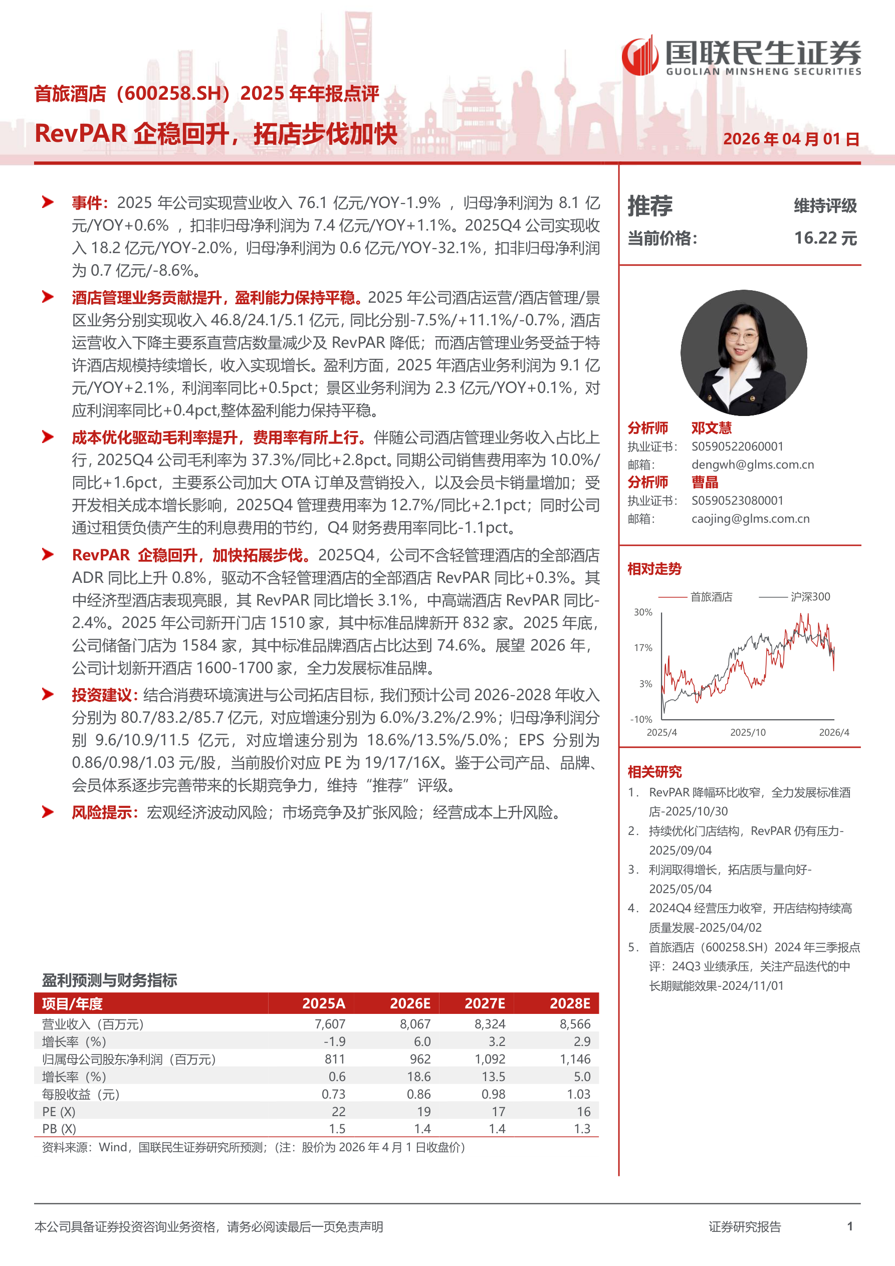 首旅酒店(600258):RevPAR企稳回升,拓....