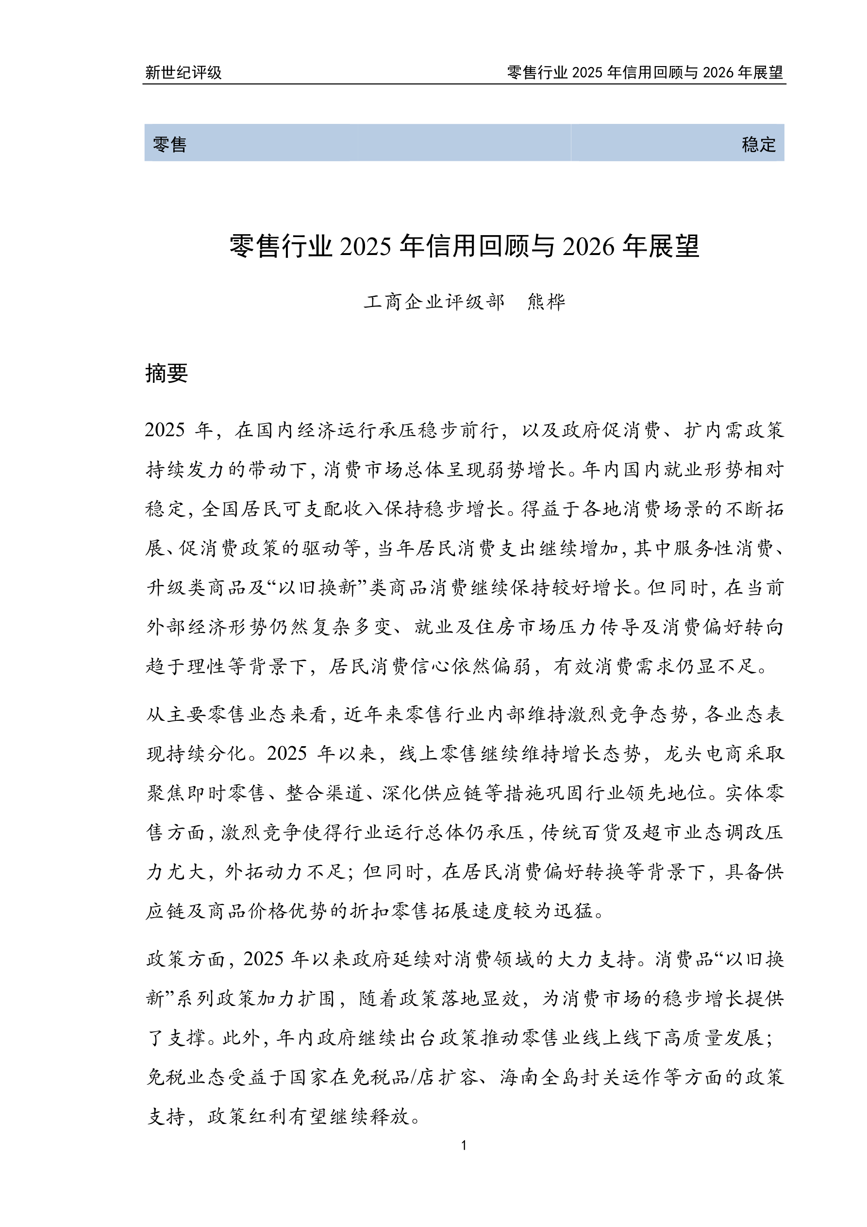 零售行业2025年信用回顾与2026年展望