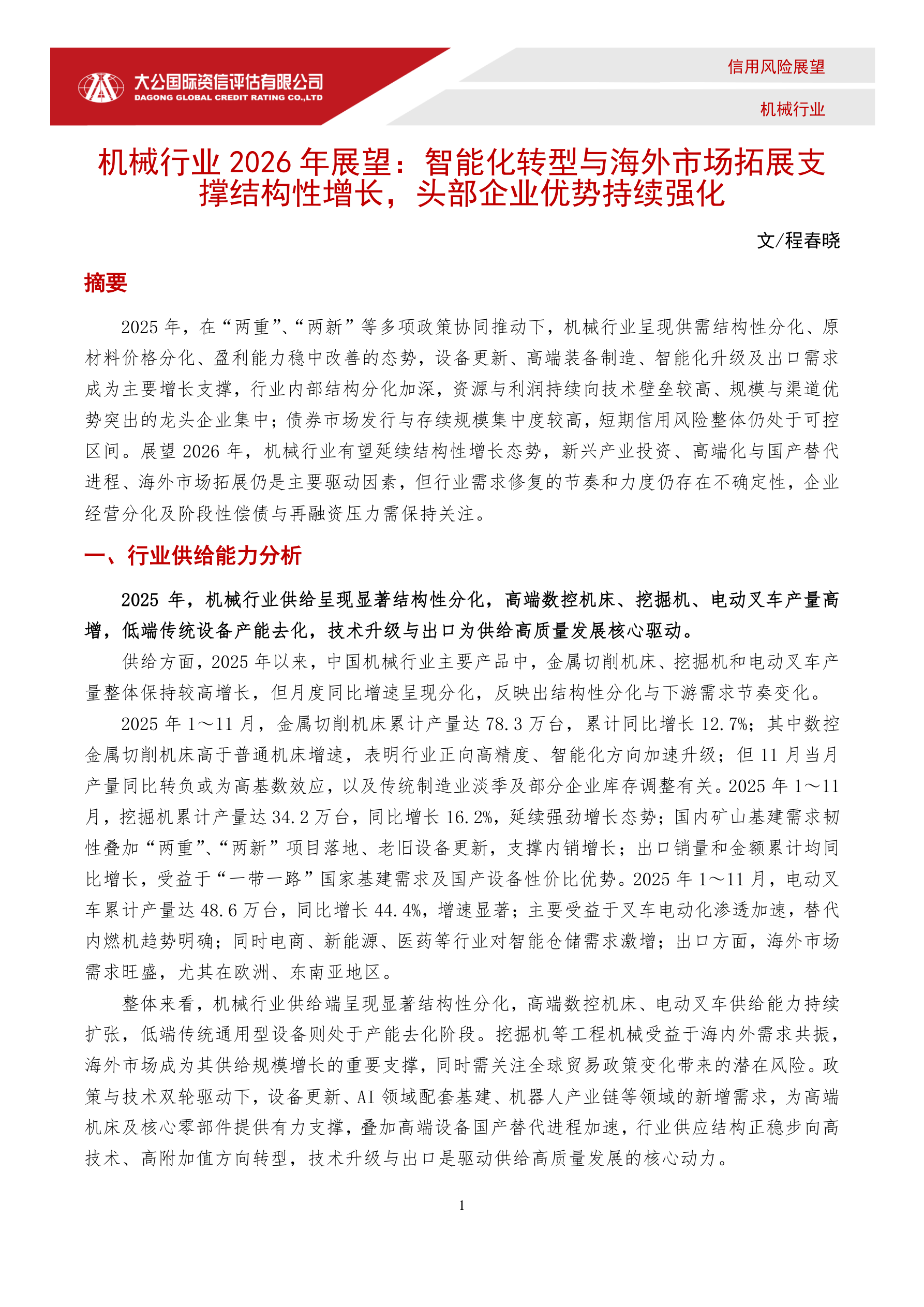 机械行业2026年展望:智能化转型与海外市场拓展支....