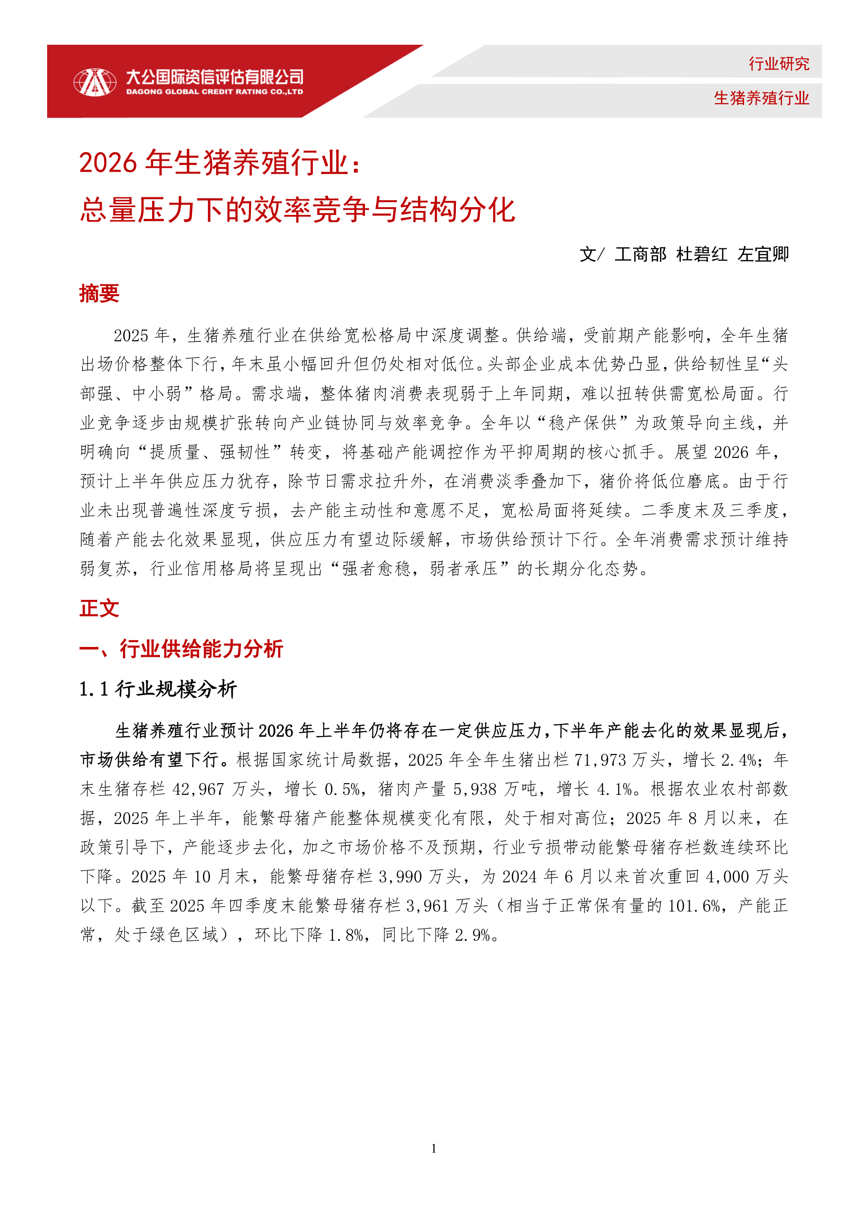 2026年生猪养殖行业:总量压力下的效率竞争与结构....